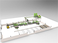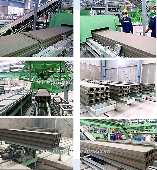 該生產(chǎn)線由專有模具設(shè)計(jì),自動(dòng)計(jì)量配料、密封輸送、連續(xù)干混、強(qiáng)制濕混、托板自動(dòng)上板、板料輸送、高性能連續(xù)擠出、成型控制、伺服同步追蹤、自動(dòng)切割、質(zhì)量在線視覺(jué)分析,自動(dòng)碼垛,叉車運(yùn)轉(zhuǎn),自動(dòng)養(yǎng)護(hù),溫濕度控制、自動(dòng)成品拆模,中央總控計(jì)算機(jī)系統(tǒng),等主要部分組成。